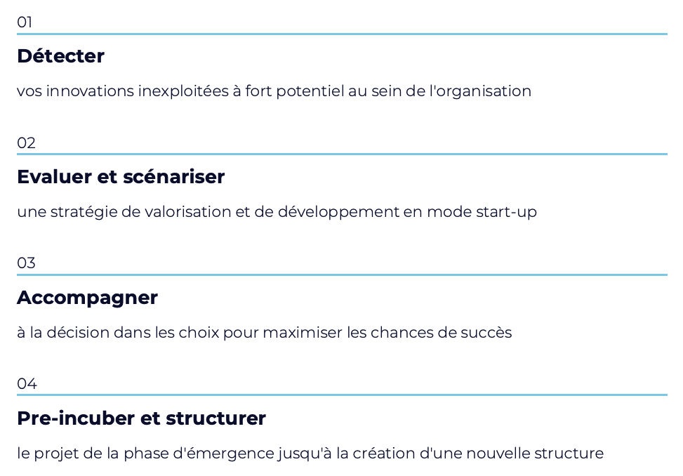 Ce programme est conçu pour les entreprises industrielles, de la PME à l’ETI, qui regorgent d’innovations à forte dimension technologique et ont le potentiel d’être exploitées à travers de nouveaux modèles économiques. L’incubateur propose de les accompagner dans la structuration et la construction d’une stratégie de développement pour permettre de valoriser ces projets et d’accélérer l’émergence de nouvelles start-up industrielles.